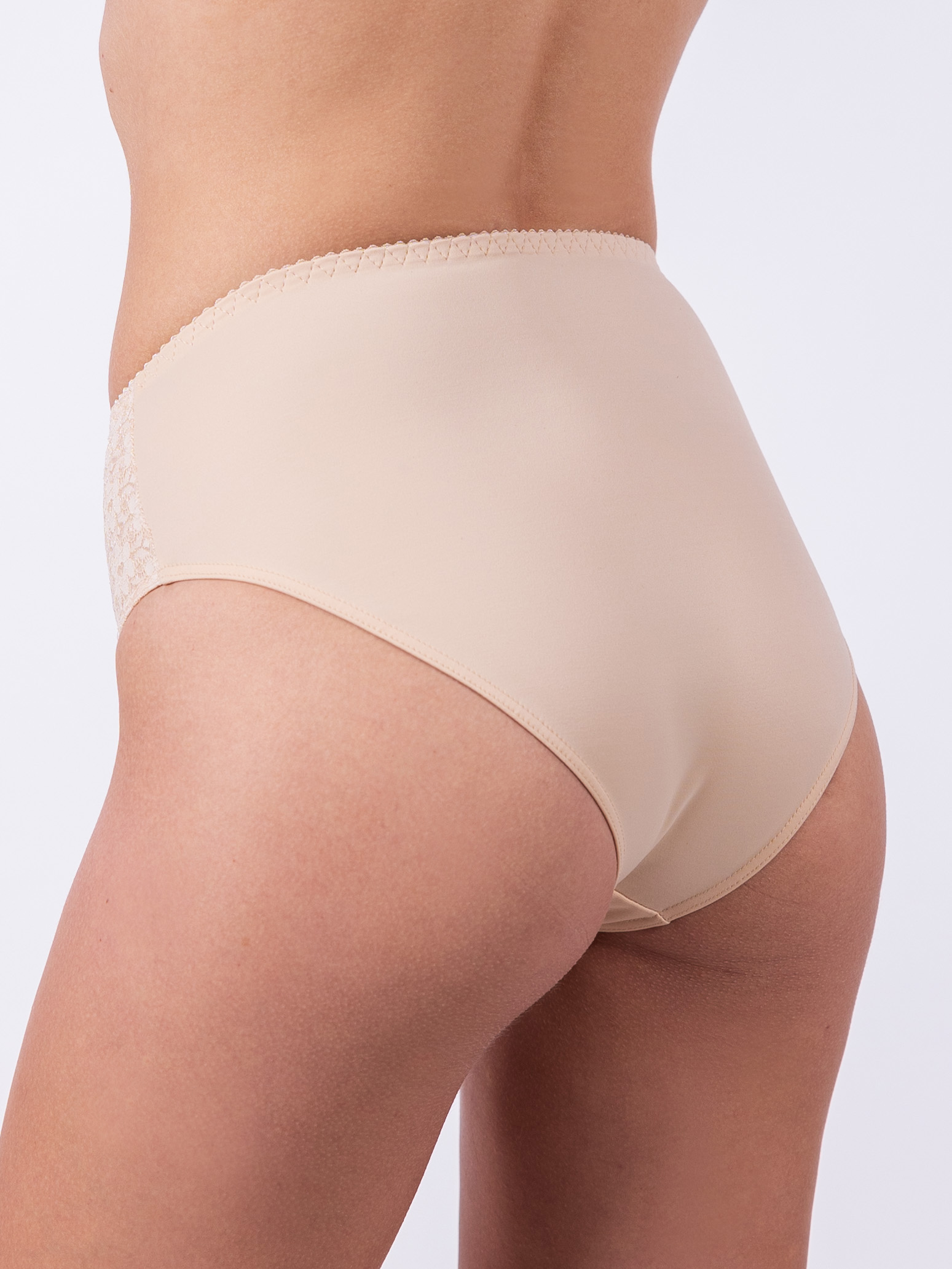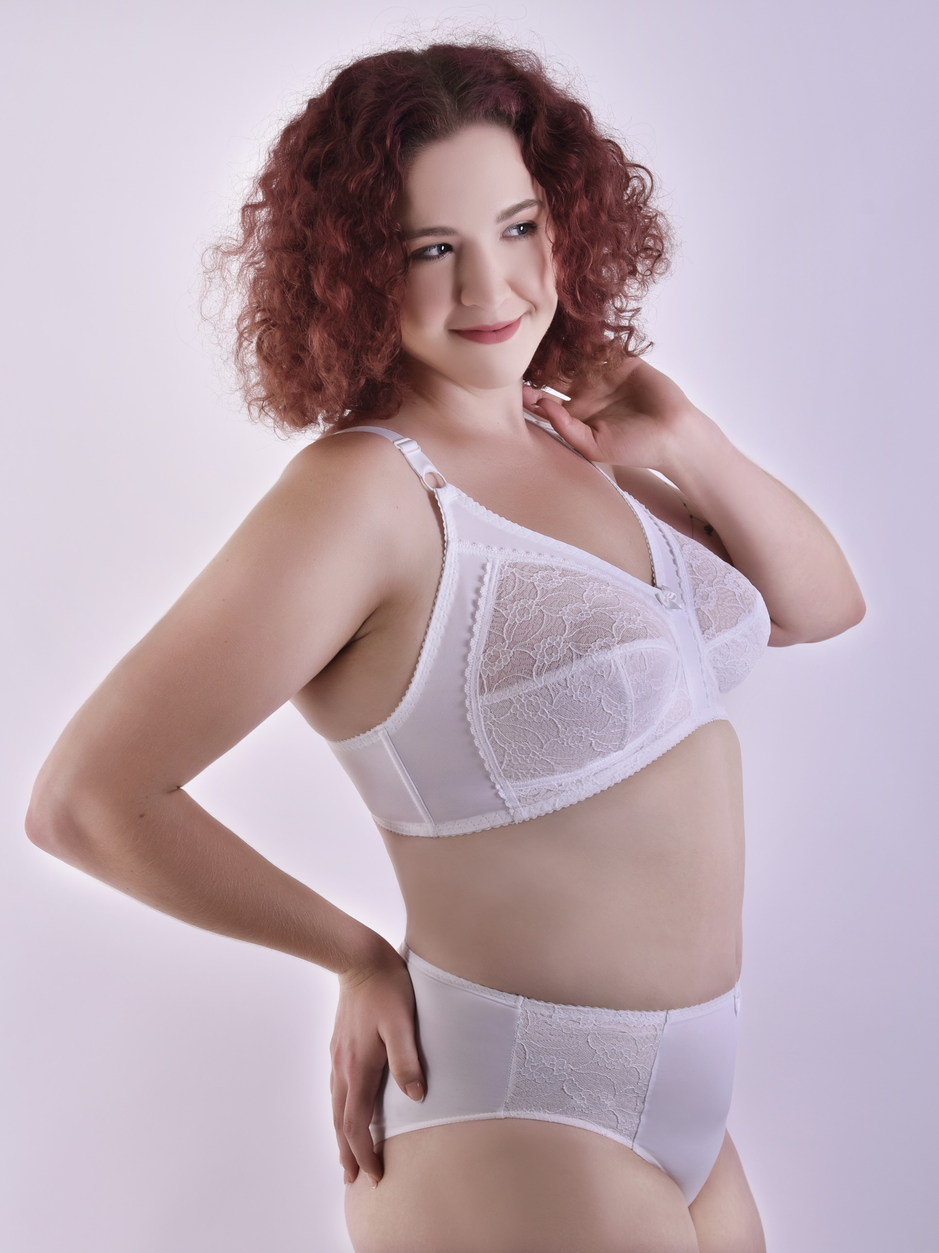 Pohodlné nohavičky vyššieho strihu vyrobené z pevnejšieho materiálu. Ten pomôže Vášmu brušku a čipka na bokoch dodá elegatný vzhľad. Do kompletu možné kombinovať s podprsenkou AKÁCIA, ale aj ORCHIDEA, MIMOZA, alebo PETUNIA, kde je použitý rovnaký vzor čipky.