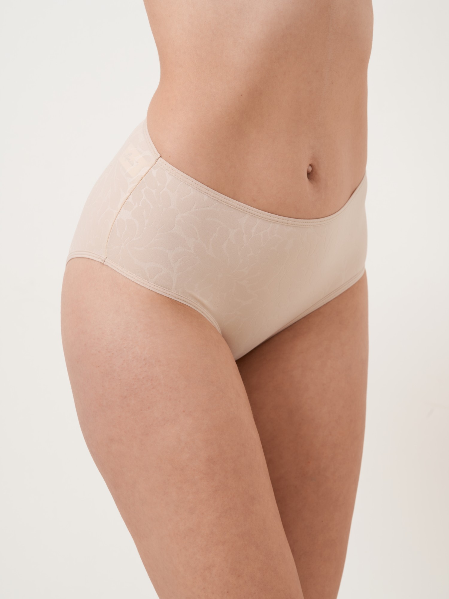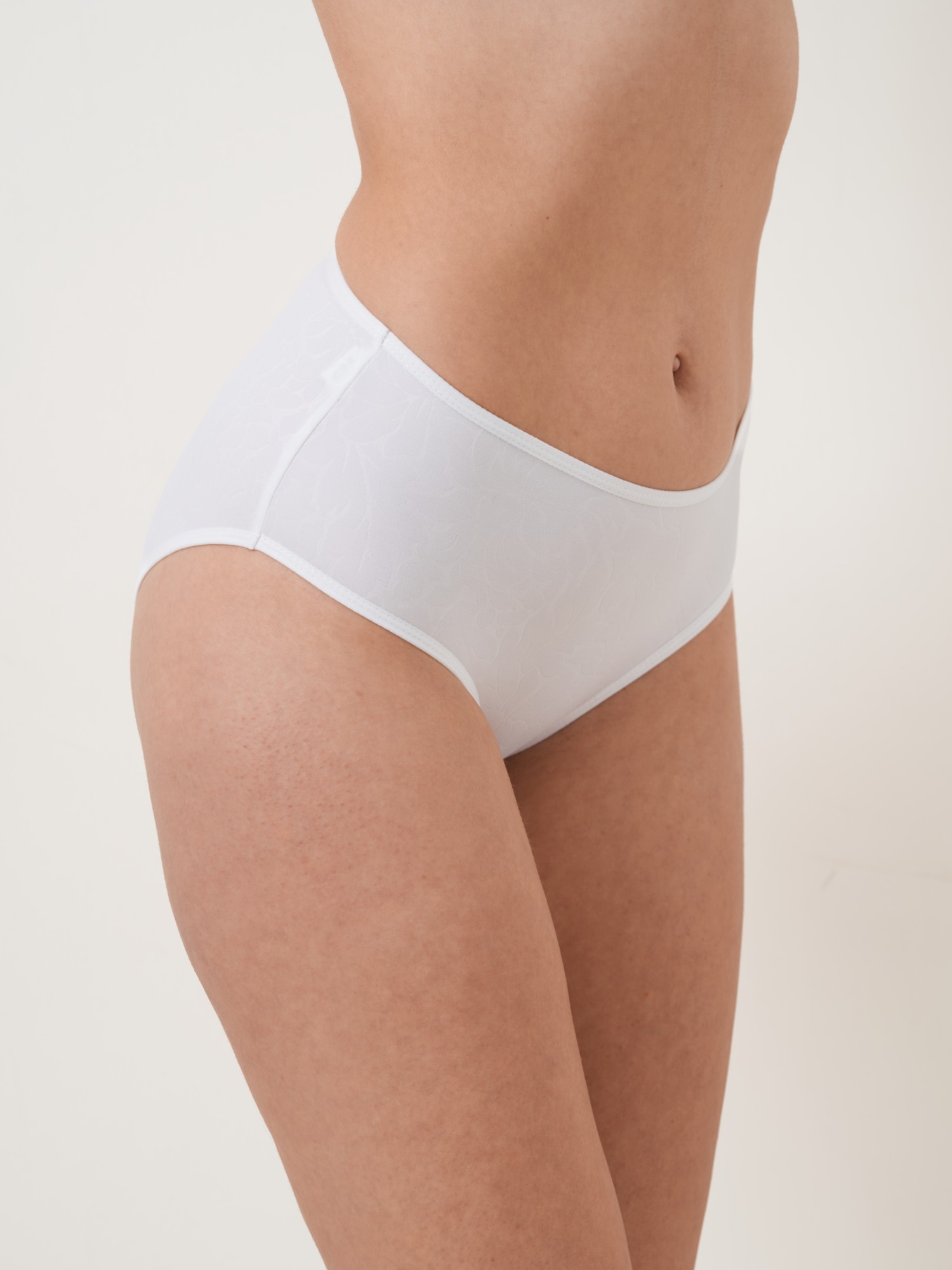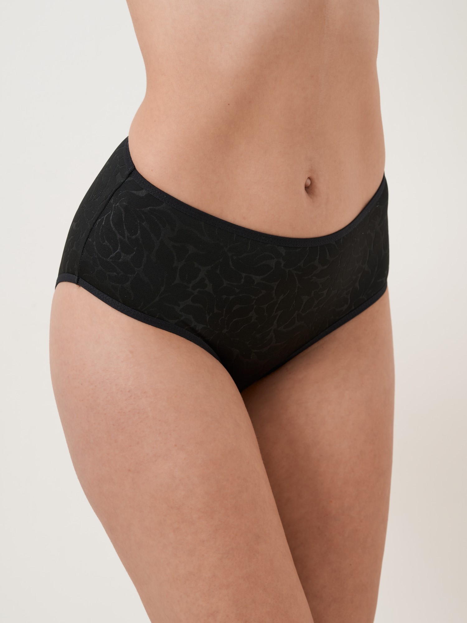 Klasické kalhotky z jemného mikrovlákna s elegantním žakárovým vzorem. Působí hladce a decentně, jsou velmi příjemné na těle a perfektně se přizpůsobí postavě. Díky vyššímu střihu poskytují pohodlí i jemné zeštíhlení v oblasti boků a bříška. Vhodné pro každodenní nošení i pod přiléhavé oblečení – nezanechávají viditelné přechody.