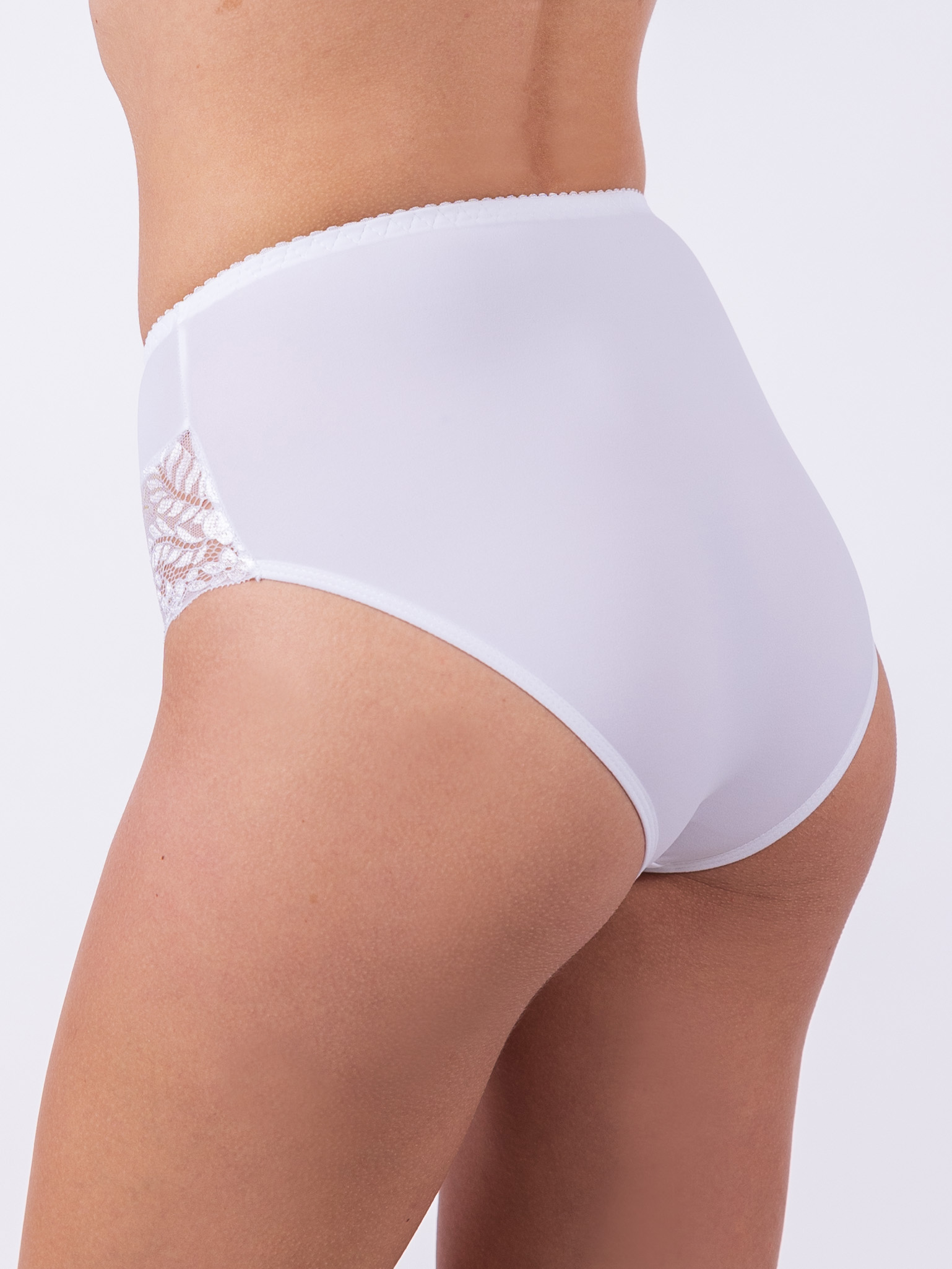 Príjemné nohavičky vyššieho strihu, zdobené luxusné čipkou na bokoch. Krásne v komplete s podprsenkou Isabela.