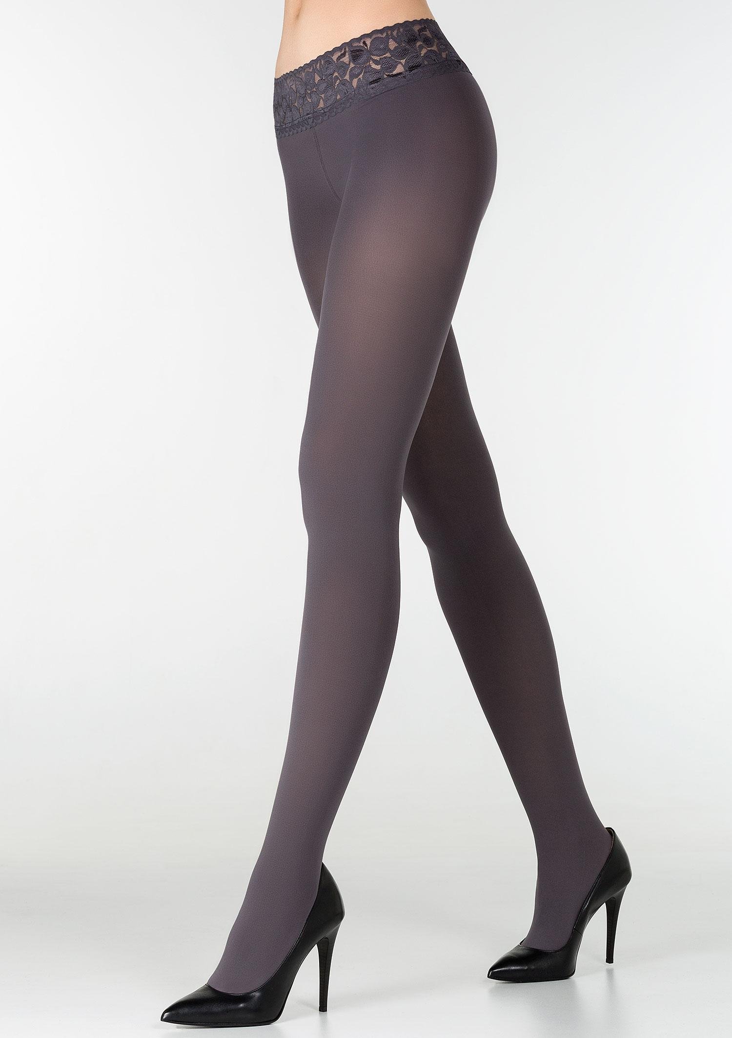 krajkový pas má z vnitřní strany silikonový proužek, který zabraňuje sjíždění punčocháčů