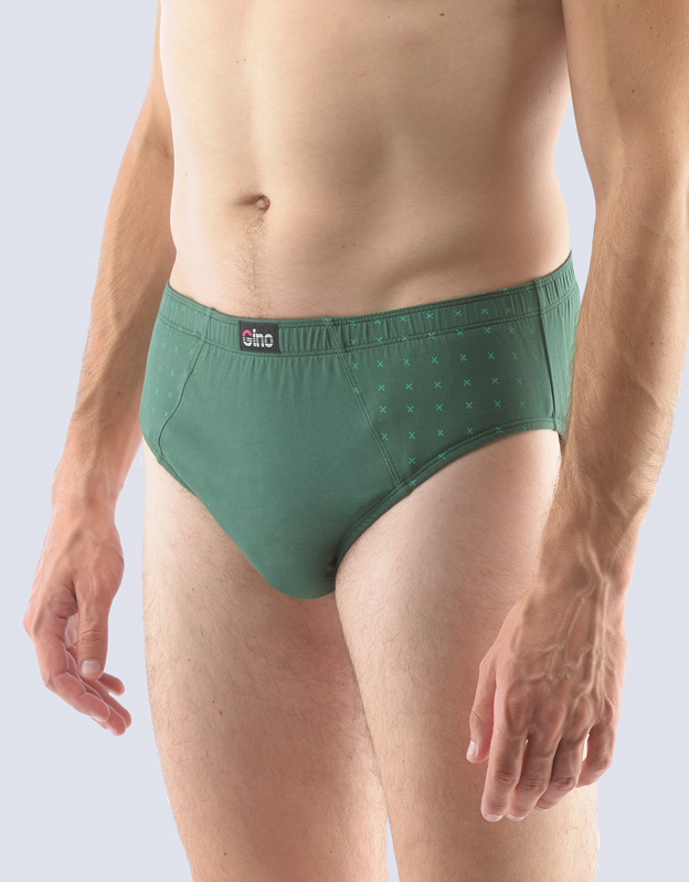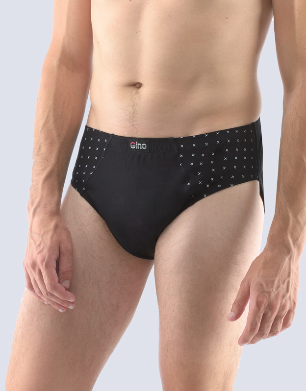 Slipy se širším bokem, pánské šité prádlo. V pasovém kraji je zašitá širší pruženka. V nohavičkách je zašitá úzká pruženka. Slipy mají vsadky potištěné drobným vzorem. Materiál je vyroben z bavlny, která je doplněna elastanem. Úplet je vhodný pro všechny, kteří hledají přírodní materiály. Elastan přidává materiálu pružnost a zlepšuje jeho tvarovou stálost. Prádlo z tohoto materiálu je vhodné pro každodenní nošení.